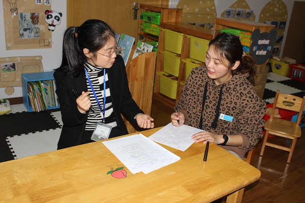 督查组老师在豪幼行政团队的陪同下实地察看了园容园貌、设施设备、课程游戏化环境等各方面工作情况,并随机走进五个不同年龄段的集体教学现场,王姣、黄芬、韩望月、陈芝兰、陈丹老师分别执教的科学、语言、音乐、美术领域游戏化集体教学活动,获得了督查组老师的一致好评。
