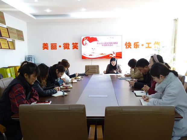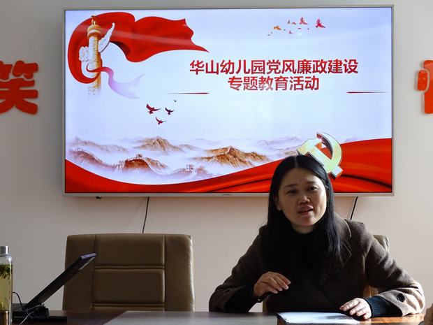 为进一步强化教职工的廉洁自律及责任意识,深化党风廉政教育建设工作,2019年12月27日中午12点,华山幼儿园的全体党员及中层人员齐聚二楼会议室参加了2019年党风廉政建设工作专题会议,本次会议由周萍园长全面主持。