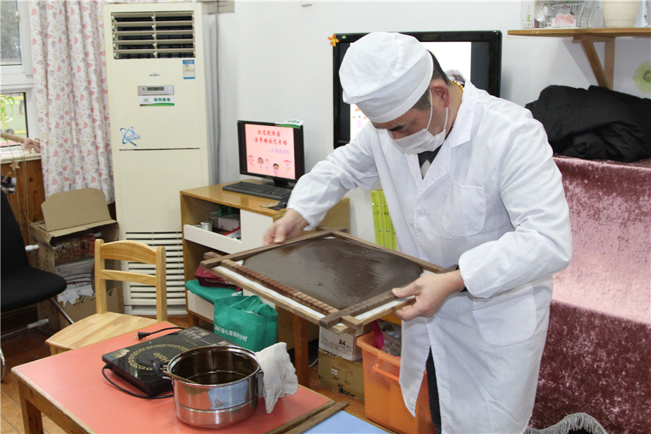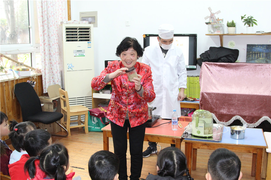 26号下午,叶莉莉老师早早地来到学校做准备。在活动伊始,叶老师先给小朋友们介绍了梨膏糖中包含的成分,让小朋友们自己尝试打梨汁,将梨汁、中药和白砂糖混合在一起,搅拌在一起。叶老师还教了小朋友一首简短的小儿歌:“糖糖糖,梨膏糖,用梨汁,用中药,止咳化痰顶呱呱!”在熬制梨膏糖的过程中,叶老师和小朋友们讲解了梨膏糖的来源,梨膏糖相传为唐代名相魏征所创。他母亲长年饱受咳嗽气喘之苦,唐太宗派御医前往诊治,但开出的中药太苦,魏征母亲不肯吃。但发现母亲爱喝梨汁,魏征就在煎煮梨汤时,悄悄把一碗药汁也倒进去。谁知一直熬到三更,梨汁因熬煮太久结成了褐色糖块。魏征拿去请母亲品尝,清苦微甜,老人家很是喜欢,竟也治愈了哮喘。消息传开,就有了“梨膏糖”的美称。在这个过程中,叶老师还展示了“小热昏”。在梨膏糖熬制好后,小朋友一起动手给梨膏糖包装。整个活动中,孩子们亲身体验、实际操作,着实让大家切身感受非遗文化的博大精深,让传统文化展现出永久魅力和时代风采。