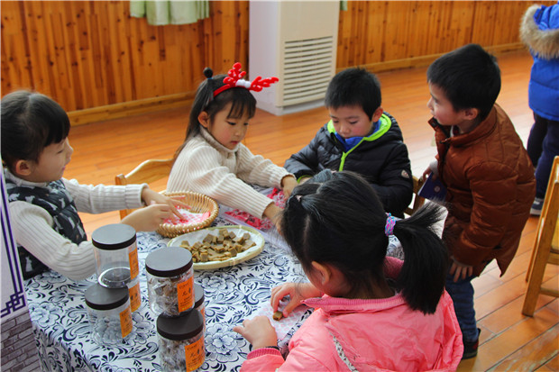 孩子们制作大麻糕的热情不减,我们在教室的生活区里提供了面粉、白糖、芝麻、擀面棍、烤箱等工具,孩子们可以动手进行简单的操作,例如:揉、搓、压、擀、卷等。此外,教室里还临时开设了“常州麻糕店”,区域活动时“小顾客们”对大麻糕的口味、样式提出了更多的要求。根据这些建议,我们对大麻糕进行了特别改良,增添了花生、开心果、松子、核桃等坚果,一个个创意大麻糕新鲜出炉。
