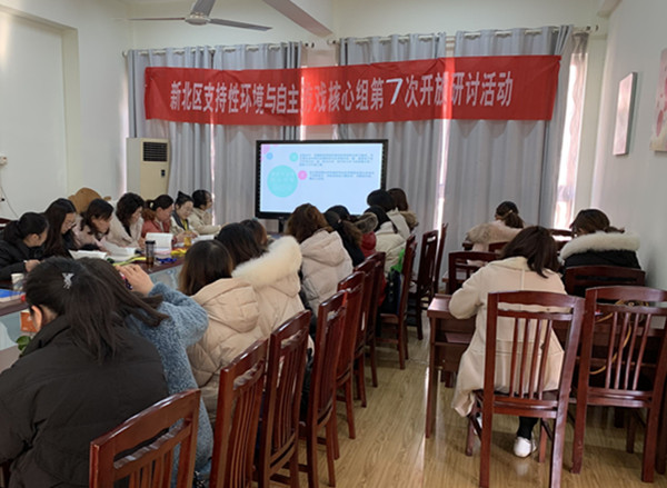 2019年12月31日上午,新北区幼儿园支持性环境与自主游戏组全体成员走进河海街道中心幼儿园开展第七次展示交流活动。