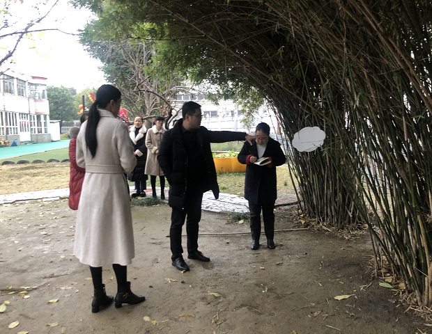 在陈华芳园长及园行政的陪同下,徐老师现场查看户外环境。徐老师慧眼如炬,一针见血地指出我们户外环境的问题,并给予了针对性极强的意见和建议。