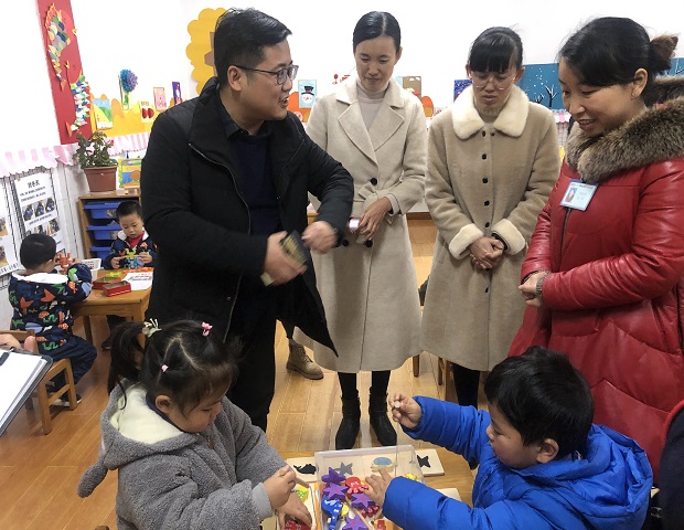接着,在陈园长的盛情邀请下,徐老师进入了小4班、中5班、大5班三个班级,观摩了幼儿的区域现场。在活动现场,徐老师对班级幼儿的活动状态及教师的指导等给予了高度的评价,也就材料的投放、环境的布置向班级老师提出了意见。