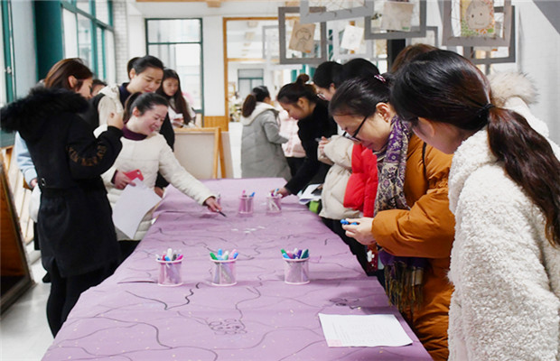 今天的区教学开放活动在藻江、百草园两个园区同时进行,参观老师们体验了藻幼别具一格的签到方式——金鼠迎春。老师们一起用画笔以借形想象的方式在画纸上寻鼠,让观摩老师们参与到藻幼的玩美活动中,体验玩美活动的乐趣。