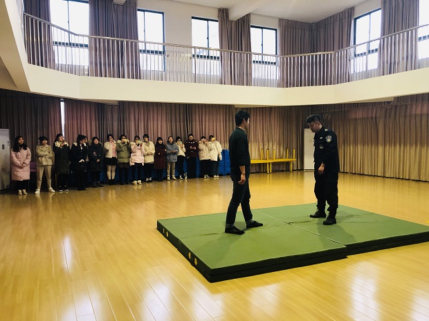 活动开始前,民警对汤幼保安和老师进行了反恐防暴的相关培训。培训讲解到了防范应对暴恐事件的基本知识、模拟暴恐事件入侵时防范的方法和技巧;还学习了盾牌、钢叉等防护器械使用要点。随后参训人员亲身体验、积极互动,模拟实战,特别针对安保人员第一时间发挥防暴器械进行自护、防护和通过相互配合使用防护器械将歹徒制服的有效方法进行了讲解。