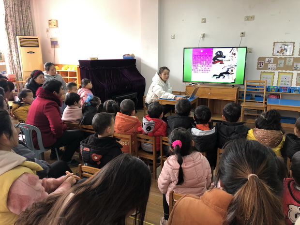在此次民间故事分享会活动中,改变了以往老师讲孩子和家长听的传统模式,本次活动以家长为主体的形式进行。活动前期,各班家长积极报名参与,精心准备,为了让孩子们听到精彩的民间故事,家长们可谓绞尽脑汁、想尽各种办法:或运用现代化信息技术形象图片,或结合小朋友熟悉的道具,还有的家长自制了玩具……孩子们十分专注,个个目不转睛、竖起小耳朵静静倾听,故事讲完了,未满足的眼光却仍在意犹未尽地看着……。