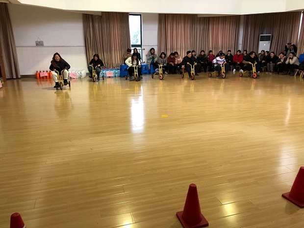 运动会开始前,小班年级组的年轻教师为我们带来了洋溢青春气息的舞蹈,为本次运动会增添活力,本次趣味运动会分为个人赛和团体赛,个人赛项目有:电动小马达、跳绳、骑小毛驴、快乐抢杯战和踢毽子,集体项目有:滚雪球。通过抽签的方式,让老师们分成红橙黄绿蓝五队,每一队都对应了一项运动项目,每位教师都积极投身其中,现场气氛热烈,老师们的精彩表现不时地引起一阵阵的欢声笑语,充满了和谐友爱的气氛。