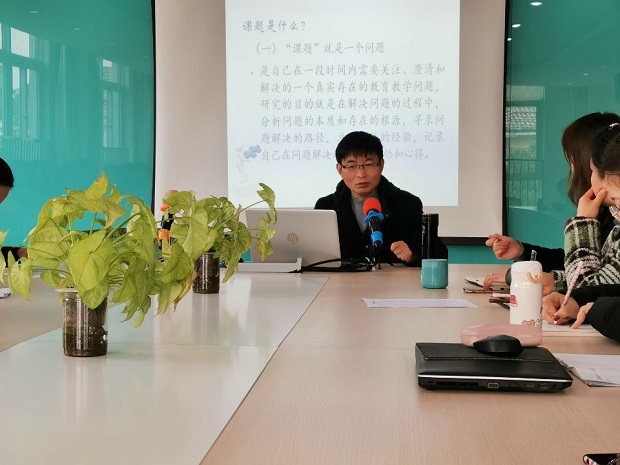围绕着老师们的困惑:怎样做课题?怎样开展课题?课题从何处来?薛辉校长指出课题并不难,其实课题是一个问题、一个愿望、一个主题,主要是围绕教育教学中一个比较具体、现实的问题展开的研究。同时,薛校长结合自己多年的课题研究案例,首先在“教师为何做研究”中他指出:教师研究是专业成长的有效途径,应成为教师的生活方式,是提高教师质量的保证。紧接着,在“教师如何做研究”中他阐述:课题研究的过程大致可以分为研究准备——选题,研究实施——查阅文献、制定研究方案,研究结题——提炼成果三个阶段,其中每个阶段都必不可少,并让我们在实践中研究,在研究中实践。最后在“教师如何写论文”方面,他提醒我们在平时的工作中要重视写作,论文的写作就来源于我们日常的教育随笔、案例教育教学实录等,教师论文是创造性的价值体现。