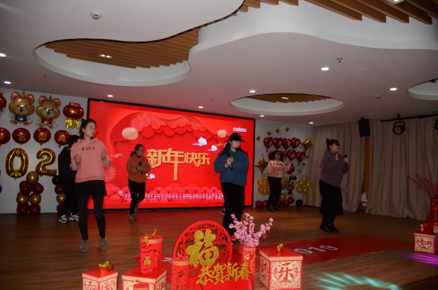 瞧,年会上载歌载舞,欢乐满满,精彩不断。青春孕育着热情,舞蹈感染者灵魂。接下来,小班组的老师表演一段有趣变装秀《小人舞》。