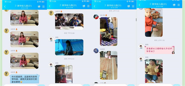 家庭方面:每天的导学内容由责任教师以视频或图片的方式进行示范发幼儿园群里,再由各班级教师转发各自的班级群,同时家长们也会以幼儿游戏视频反馈在各自班级群,这样的双向互动,避免了家长只看到导学要求没有具体的实施方向而盲目的弊端,同时亲子游戏不仅带给了孩子以欢乐,还让家长更加了解自己的孩子,让家长们看到自己孩子闪光的一面!