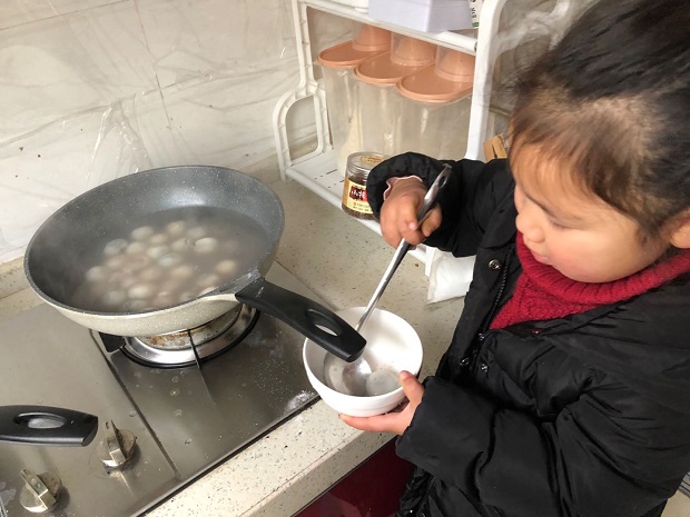 元宵节,当然少不了吃汤圆啦!小班的孩子们和家长们亲子动手制作元宵!小班小朋友用一双双能干的小手搓出一颗颗甜蜜的元宵。宝贝们吃着自己制作的元宵,内心的成就感全部显示在那张张小脸上!