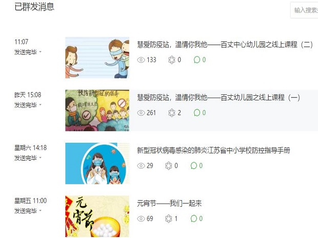 通讯组定期向区宣传群发布信息简报、典型人物、学校政务信息。公众号进行疫情防控的正面宣传,引导家长理性对待疫情。及时转发区各类工作群中的信息到教工群,让教工积极转发到朋友圈,扩大宣传面。