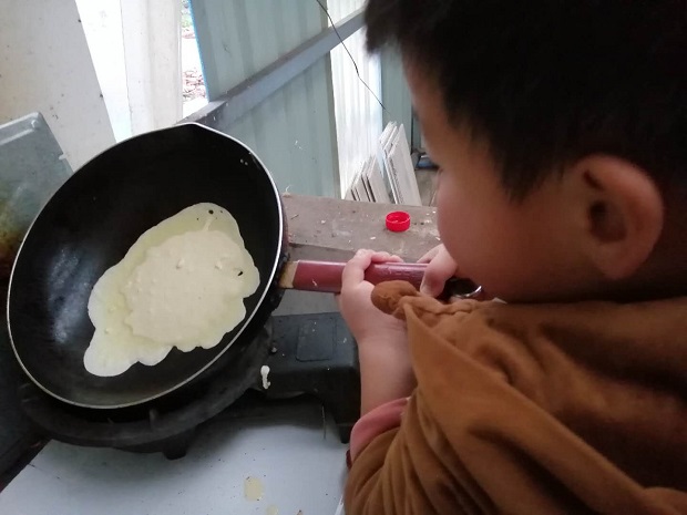 蓝天白云,鸟语花香,家门口的场地成了我们的欢乐园“倒车请注意!倒车请注意!”小风微微,阳光正好,孩子们在玩倒着走的游戏呢,还能时不时地加大难度,制造障碍物呢。他们还创编了《加油武汉》律动操送给大家,为中国加油!烹饪小达人出动!大班小朋友还是做饼高手呢,洗菜、切菜、和面,煎炸……没有一样难得倒我们,鸡蛋饼、青菜饼,隔着屏幕都能闻到香味了,拿上自己劳动成果与家人一起分享,是一件多么幸福的事啊。