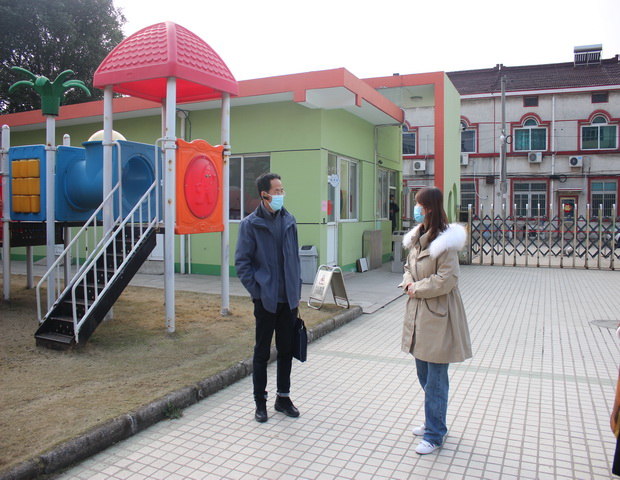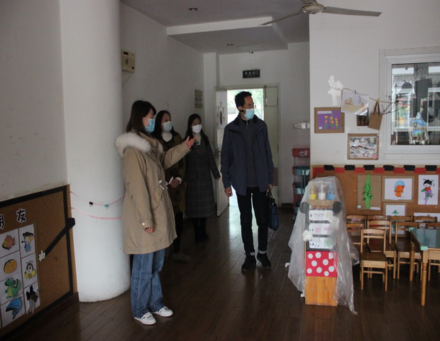 上午八点半新北区教育管理服务中心刘敏骏主任来到圩塘中心幼儿园,对我园开学工作方案制定、学校防控机制建立情况、师生员工排查监测情况、物资储备及管理工作、业务知识培训、校园进出管理情况以及隔离室设置等情况进行了综合督查。