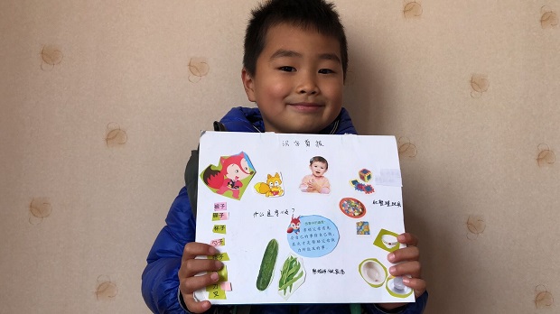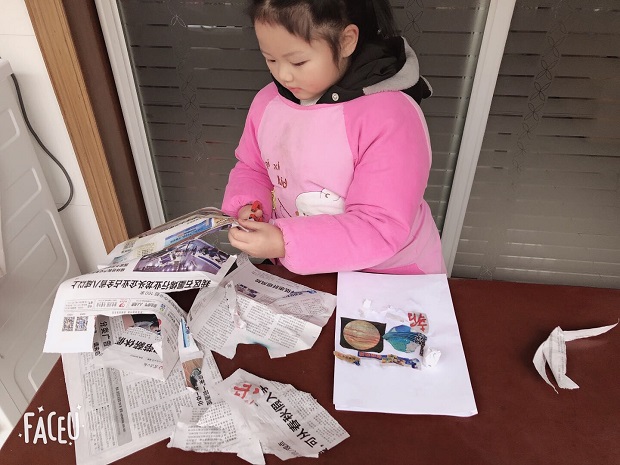大班孩子则在家中开启了一场趣味横生的剪报活动。孩子们纷纷从画册、绘本、报纸上找出喜欢的文字、团,制成了识字剪报、故事剪报,甚至还有孩子在剪报上画装饰。每一份剪报都是别出心裁呢!