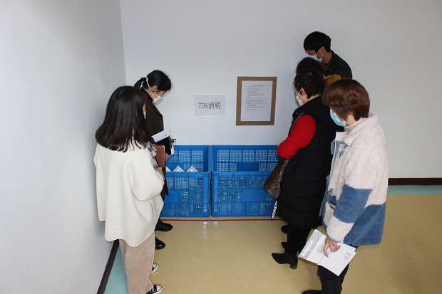 在赵晓丽园长的陪同下,周科长等人从幼儿园门前的进园流程图开始对我园的校门管控、组织培训及能力建设、台账资料、宣传教育等工作执行情况都做了仔细检查,同时对食堂餐具消毒、隔离观察室、户外等场所进行实地查看。周科长充分肯定了我园在疫情防控期间所做的努力,同时也对户外垃圾桶的要求与使用以及开学后的消毒、杀菌工作给予了更细致的指导。