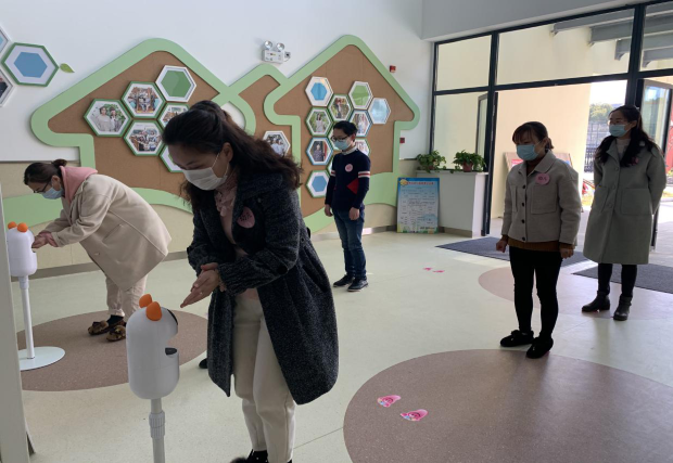 演练前,孝都幼儿园疫情防控指挥部精心制定演练方案,详细研究应急疫情处理流程,提前分配模拟任务,再次明确各岗位职责分工,让参与人员熟知演练过程。如:在幼儿园门口、洗手机器人前设置间隔1.5米安全距离标记。