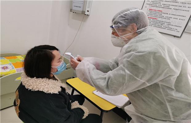 幼儿及家长有序排队,前后间隔距离一米左右,等待进行体温测量。测温仪显示一名幼儿体温异常。若家长在现场,立即与家长沟通询问情况,要求送至指定医院检查。若家长不在现场将幼儿带到隔离室,对幼儿测量体温、手部消毒、周身消毒。同时保健老师询问幼儿及家长近14天往返史接触史,并要求家长出示健康码,做好登记汇总。园长、分管负责人立即向上级相关部门汇报情况。