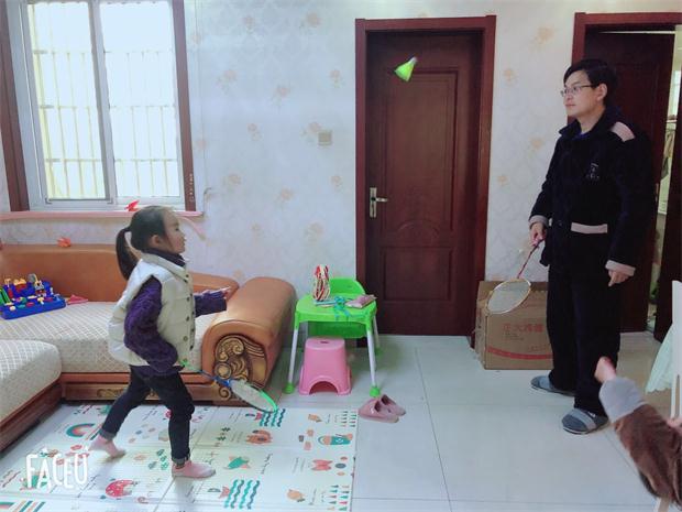 老师们继续采用线上线下相结合的模式展开,利用微信群等媒体方式向家长分享亲子小游戏、科学小实验等,瞧!大(9)班于倩雯小朋友正在家中和爸爸玩羽毛球呢,我们一起去看看吧!