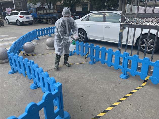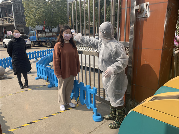 负责晨检的保健老师穿好防护服戴好口罩和防护镜,在校门口负责晨检。每位老师在进入幼儿园是都要进行晨检,晨检时做到人与人之间相隔1.5米,排队有序晨检。