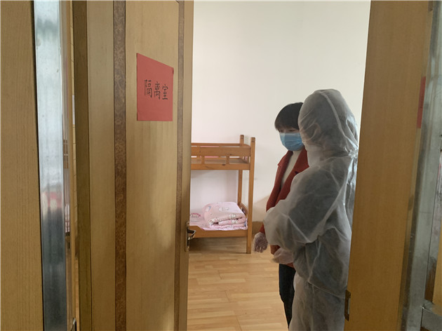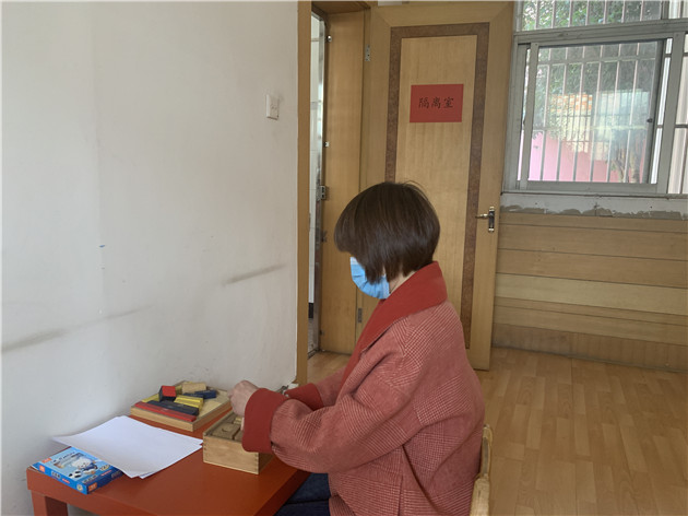 演习中假设午检中出现体温异常的幼儿,班主任及时将幼儿带到幼儿园隔离室进行隔离,并立即消毒教室与走廊,将情况通知保健老师与园长,保健老师与园长逐级上报相关情况。