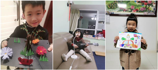 多元游戏,快乐一家:玩一玩科学小实验,动手又动脑;唱一唱杨柳青,静等抗疫胜利的春天;画一画树叶畅想画;画一画树叶畅想画,小树叶们开始茁壮成长,就像我们小朋友。