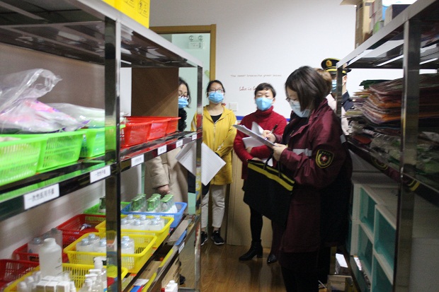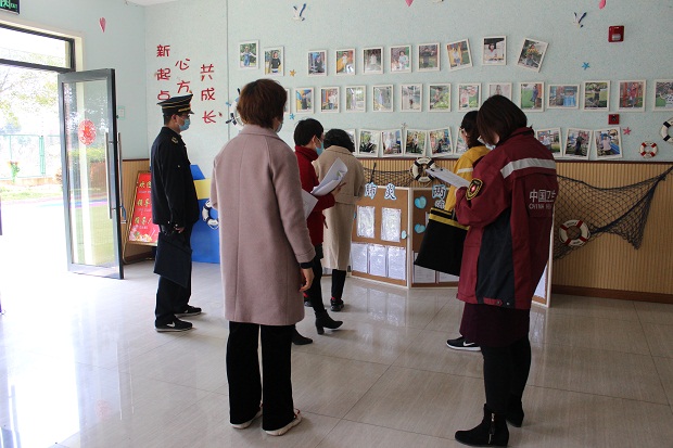 督查组在赵晓丽园长的陪同下实地查看了校园出入口、观察室、保健室、办公室、教室、仓库等重点区域,了解了消杀工作并详细询问了物资储备情况、重点人群摸排、全员教工培训情况,认真细致地翻阅了各类台账资料。最后张主任对我园的防疫工作给予了高度的评价:全园思想重视,组织机构清晰,责任分工明确,制度制定详实,物资储备到位,培训举措多元。同时也提出新的要求:在有效、有序落实各项工作的同时,还是要全体教工绷紧安全这根弦,特别是培训要能守住“全覆盖”的底线,追求人人知道流程、要求的同时还要能熟练操作的目标,确保春季开学工作安全、稳定、有序地推进。