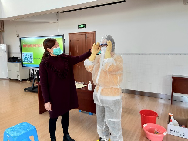 本次培训内容主要包括:一、各场所内清洁消毒的具体操作方法;二、各种消毒剂的用法、注意事项以及使用过程中的个人防护等消杀知识和技能;三、预防性消毒和呕吐物消毒的不同消毒配比;四、班级突发疑似患者后的一系列应急处理措施;五、正确的洗手方法;六、防护服的准确穿脱步骤和注意事项等。