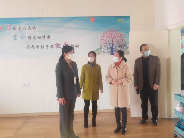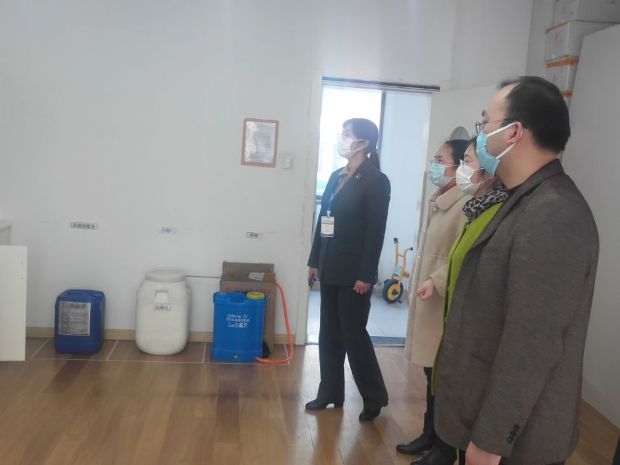完主任一行就目前幼儿园的总人数、滞留湖北人员数量以及滞留原因等向园所负责人邵勤娴园长作了详尽的了解,并查看了园区内的隔离室、物资储备室等重点防控场所。邵园长对隔离室和物资储备室内的各项物资做了明确地介绍,并就目前返常教师与幼儿的情况以及14天隔离状况做了详细的汇报。