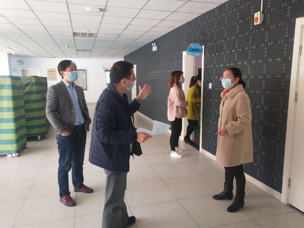 3月18日,新北区卫健局陈波处长和区教育局潘志强主任一行4人来到新桥镇中心幼儿园,深入督查开学防疫准备工作。