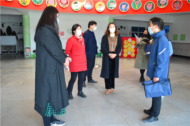 为做好师生返校复学工作,确保开学有序推进。2020年3月20日上午11点,新北区基教处高丽泽,区卫健局卫健二处赵建慧,区疾控中心主任宦华敏、主管医师黄亮,卫监所董雪根及奔牛医院陈红明副院长一行6人,莅临奔牛实验幼儿园督查指导疫情防护工作,了解复学准备工作情况。