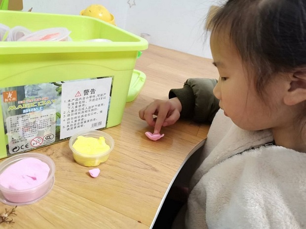 中班的孩子们用灵巧的小手和五颜六色的彩泥,将五彩斑斓的春天展现在我们的眼前。瞧,粉色的彩泥在宝贝的手中捏呀捏呀,捏成了一片片花瓣,在把花瓣捏在一起,然后用黄色的彩泥制作花蕊。最后,把做好的桃花固定到准备好的树枝上,就这样一朵朵漂亮的桃花尽显眼前!