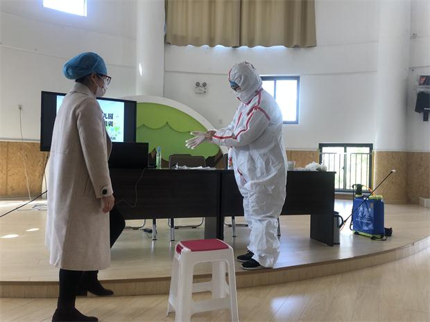 本次培训邀请了卫生院防保科沈丽红医生进行莅临指导,内容包括环境卫生消毒、物体表面卫生消毒、物品卫生消毒、手清洁、发生传染病后的消毒等,对幼儿用具:餐具、毛巾、杯子、桌面、玩具的消毒;幼儿活动室、厕所的消毒;清洁工具的消毒;重点讲解了“84”消毒液和泡腾片的不同比例配置和消毒规范,并进行现场实践操作,同时强调要以消毒质量监测标准做好日常消毒工作。最后沈医生还现场演示了防护服的穿脱方法。
