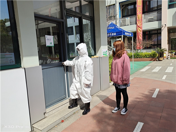 首先,徐英园长带着井幼团队查看校园的每个角落:指示牌是否到位?宣传板位置是否合理?测温仪操作是否得当?教室消杀是否达标?应急物资是否充足?在稍后的会议上,徐园长对相关细节进行了提醒或调整。
