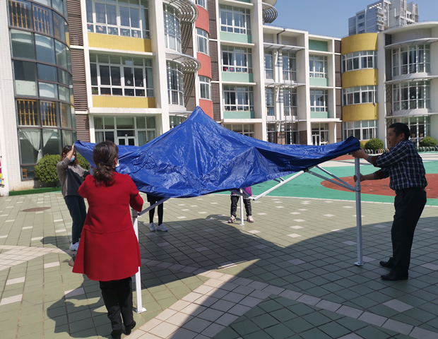 根据区教育局要求,我园实行封闭式管理,进一步强化疫情防控期间的值班工作,严格落实学校领导带班,行政和保安值班的相关制度。全体保安明确“有来访,戴口罩,隔2米;测体温,健康码,问领导;如同意,进园门,细登记”的27字要求,严格落实疫情防控期间人员出入登记,严防外来人员进入学校。带班领导全面巡视各园情况,及时反馈当日检查,确保防控不留死角。值班行政时刻保持电话畅通,全面做好应急响应,守好学校第一防线。