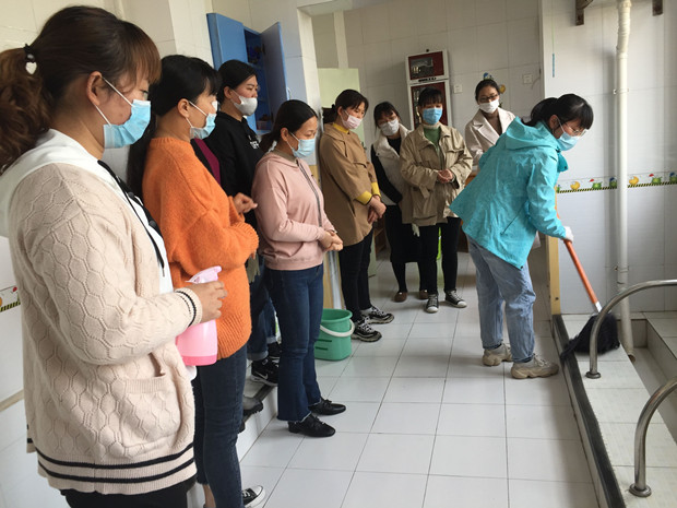 为提高保育员预防新型冠状病毒疫情意识,熟悉并掌握日常消毒工作的操作流程,提高应对突发情况处置能力,2020年4月9日下午,百丈中心幼儿园组织保育员开展了新冠肺炎防控消毒实操演练。