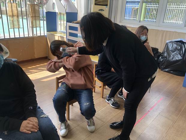 根据演练情境假设,学校门口值班人员一人测量幼儿体温、一人查看家长健康码。当幼儿在晨检有发热、呕吐等现象时,会由学校老师带离到隔离区域进行水银温度计的再次测量,再遵照处置流程,各司其职,做到心中有数、遇事不乱。
