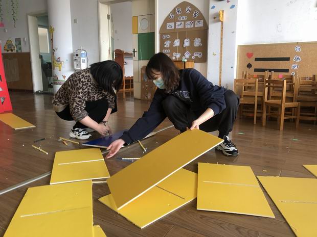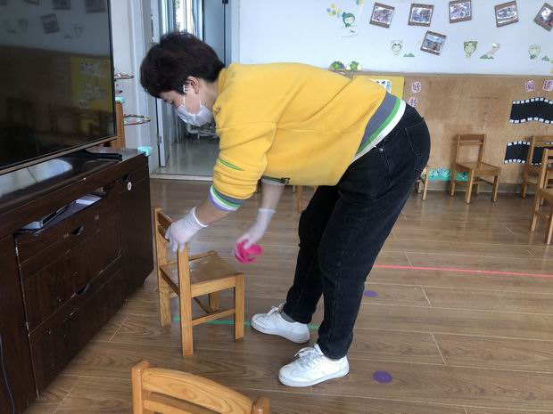 为贯彻落实疫情防控的工作部署,全面周密地做好学校开学后的各项防控工作,依据《新北区中小学幼儿园开学工作指导方案》,结合学校制定的《圩塘中心幼儿园防控工作应急处置预案》。为了让每个教职员工都参与其中,圩塘中心幼儿园三个级组在4月7日、8日、9日这三天分批开展了开学第一天演练、打扫卫生、环境布置、区域布置等。