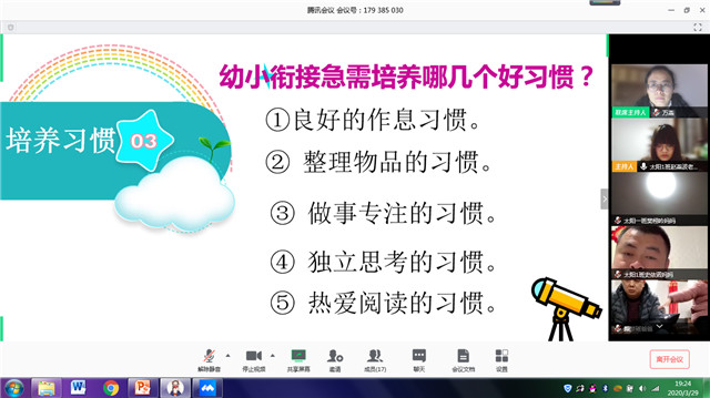 龙幼是一个大家庭,每个班级都是不可或缺的一员。经过十个样本班级的尝试,“云”上互动式家长会就这样在每个班级中展开:腾讯会议、微信视频的方式让每位教师都与家长面对面,热烈的讨论着互动话题;有针对性的调查问卷、个性化的策略提升,让家长在育儿的理念上有所提升;合理利用资源,走出班级的限制,太阳5班邀请太阳1班的家长介绍幼小衔接的经验策略……疫情期间,或许我们无法围坐一起畅谈,但是并不妨碍园家的线上互动式交流。一切为了孩子,一切为了成长,在线上互动交流的过程中,无论家长、幼儿还是教师,在育儿的经验策略上都有了一个新的飞跃,一条新的育儿道路正在眼前打开。