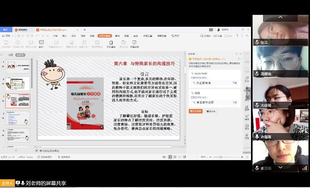 宅家期间,如何有效进行园家沟通,形成教育合力,班主任艺术工作室通过阅读《幼儿园家长工作指导》一书中的精选章节,联系实践经验,畅谈各自感悟,在智慧火花的碰撞中擦出的有效策略,让大家受益匪浅。前期,每个成员进行园家共同案例撰写,积攒了大家的经验智慧之谈,形成了《云陪伴下,园家沟通情况梳理表》。本次教研中,大家用放大镜全纬度找茬,从版块划分到内容聚焦,从格式安排到观点呈现,提出自己的观点与建议。老师们在互动碰撞中,挖掘亮点,寻找问题,探讨策略,力求经验的梳理能对一线教师日常园家沟通有促进作用。