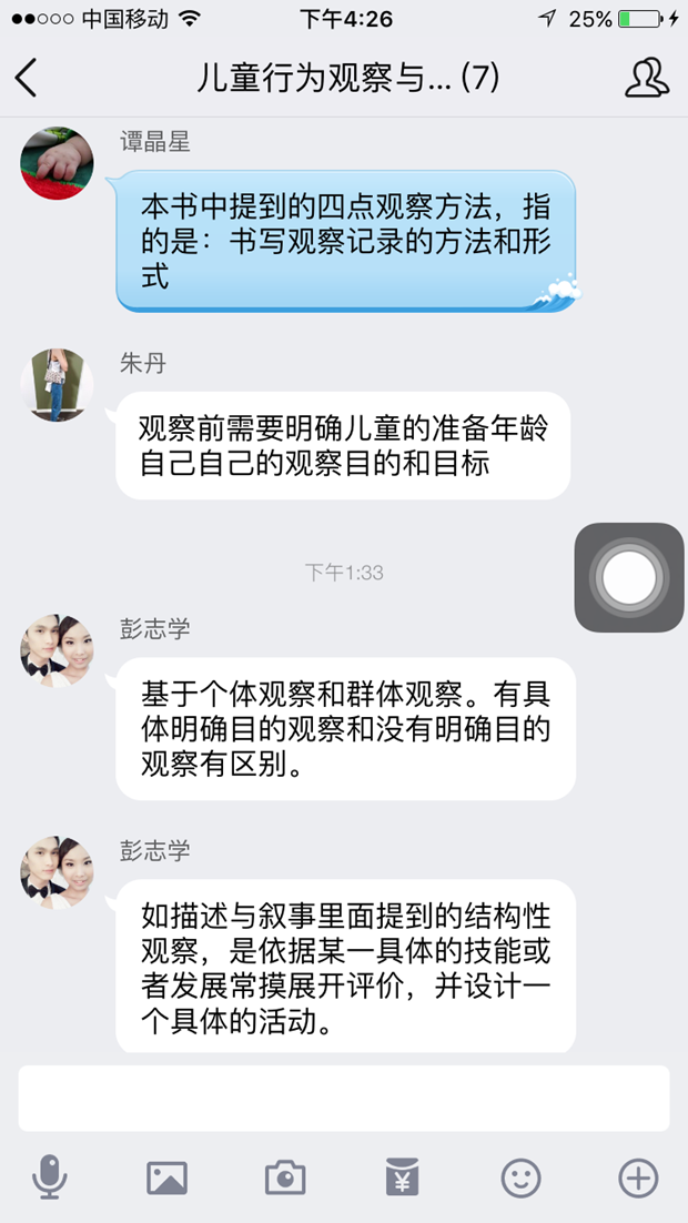 观察是一扇门,让我走近你的世界;观察是一面镜子,我能看到你,你也能看到我;观察是一把螺丝刀,凝练了我,也将我和你紧紧连在一起!观察,缘始于“遇见”,情长于“陪伴”。虽无法相见,行为观察组的全体成员们阅读脚步可未停止,我们就《观察:走近儿童的世界》第三章:观察的方法,提前进行了读书心得与读书困惑的思考。
