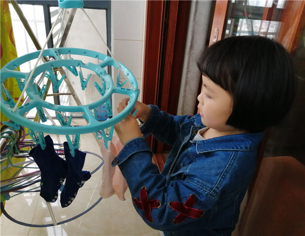 我是家务小能手,晾衣服、叠袜子、洗玩具、做馒头、浇花等等样样都会做!