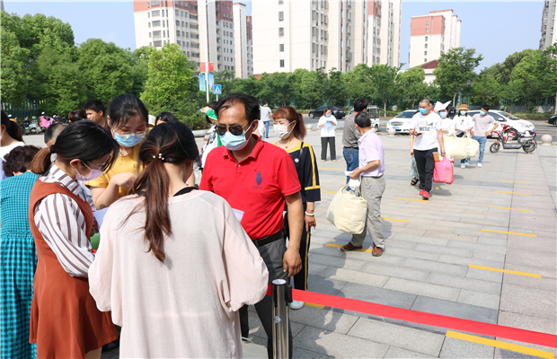 早晨8:30,家长在做好个人防护的情况下在各点位有序排队等待报名;在规定时间内,大班老师按照要求进行幼儿复课材料审核,小中班老师帮忙运送被子到教室,再由保育老师进行幼儿床铺的整理,并对整个教室进行消杀工作。