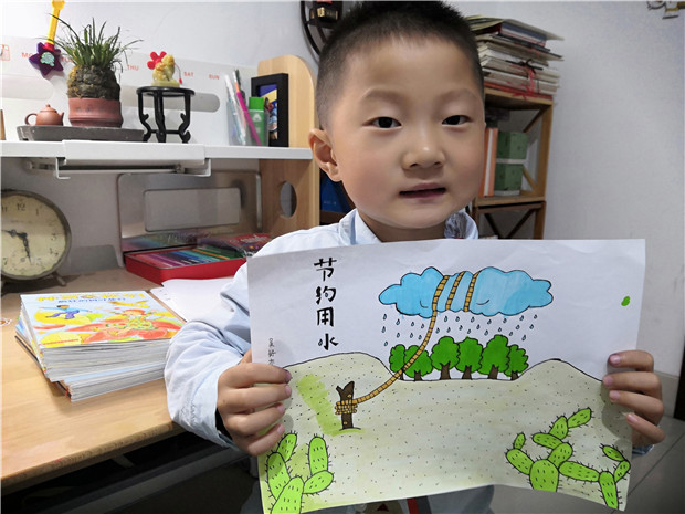 各班根据孩子的年龄特点开展了丰富多彩的活动:小班幼儿学唱洗手童谣、了解生活中节约用水的小常识;中班幼儿通过绘本故事知道水的多种用途,并认识了节水标志;大班幼儿录制视频、儿歌、设计节水标志等方式深入节水活动。中大班幼儿还用手中的笔描绘出一幅幅图画,表达了珍惜水资源、保护水资源的美好心愿。