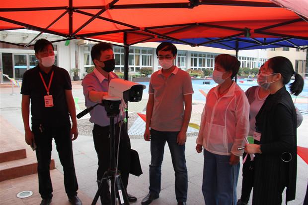 检查组在该园邵勤娴园长的陪同下查看了日常体温检测点、食堂、防疫物资储备室、隔离室等校园防疫设施的准备情况,听取了开学准备工作、师资安排等情况,并对保健老师、保育员、食堂工作人员等教职员工进行了消毒液配比、食堂卫生管理、幼儿体温异常应急处理等操作流程的随机查问,被查问的教职员工有条不紊地进行了回答和演示。