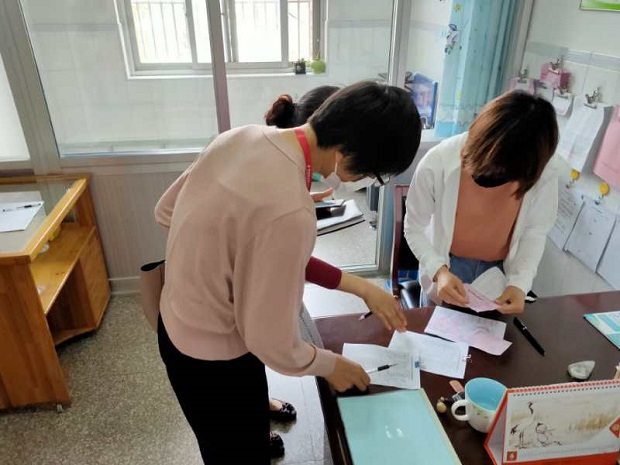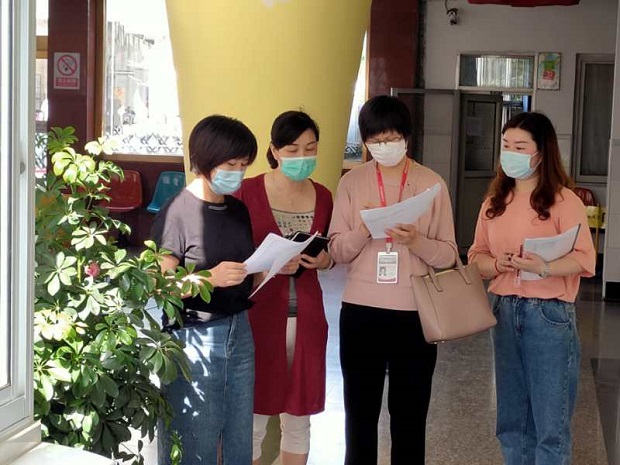 紧接着毛老师和园领导走进幼儿园,观察幼儿在园一日活动的防疫工作开展情况。他们分别从设施设备、保健层面、教学层面、危化品管理、治安防控等安全层面进行了检查,不仅提出了宝贵意见,还对小幼全体教职工的防疫工作表示肯定。