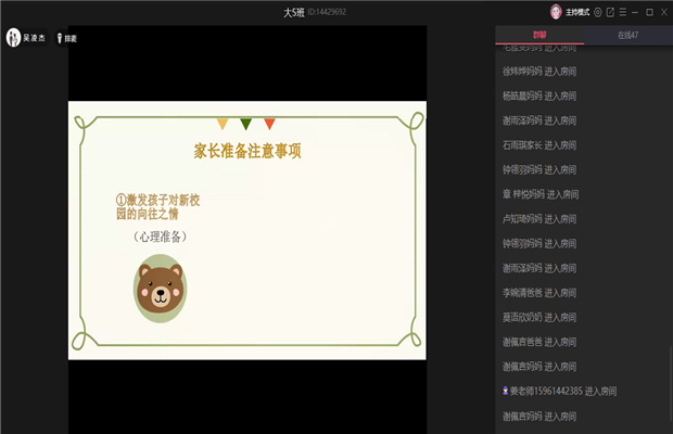 幼小衔接是幼儿的生命成长历程中必不可少的阶段,幼小衔接是幼儿在学前阶段为了适应小学学习生活而进行的生理、心理、能力、习惯各方面的准备。为了做好幼小衔接工作,罗溪镇中心幼儿园与罗溪中心小学携手,通过“云会议”的方式于5月13日、14日两天对大班家长开展了幼小衔接活动。