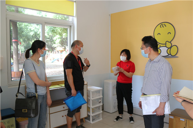 督查组针对河海街道中心幼儿园两部(国宾部、岷江部)进行全面现场督查。从食堂、教室、隔离室、防疫物资储备室等现场到档案资料的开学工作计划、开学第一课、疫情期间人员排查统计、班级物品消毒细则等进行了细致全面的询问和检查。现场,督查组有针对性的给出建议和指导,要求条线细则化,快速进行整改,做到以幼儿为主,以防疫安全为主开展复课、复学活动。