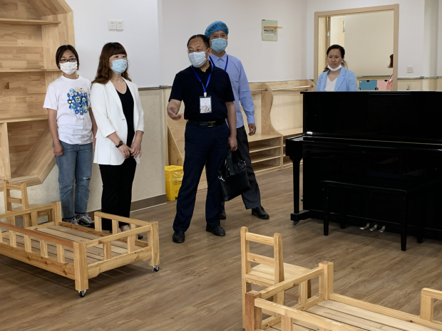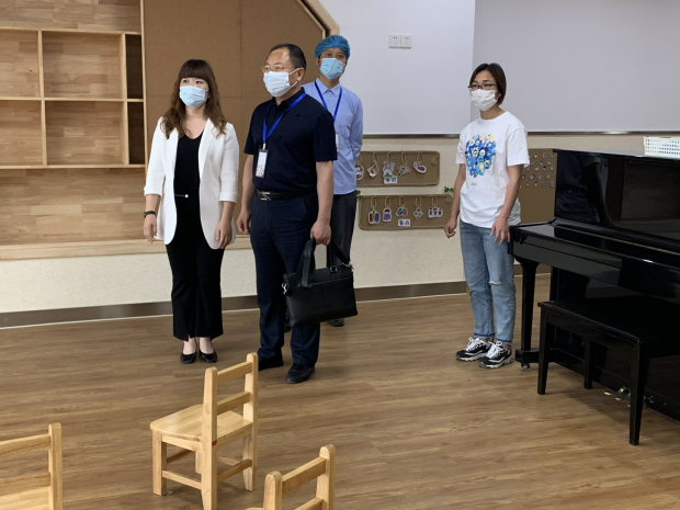 督查组在园领导的陪同下,实地察看了幼儿园教室环境、食堂卫生等情况,对疫情期间教学如何开展,消防安全、疾控安全等情况进行了解,尤其是详细询问了幼儿园“错时错峰”开学复课的措施,检查幼儿返校后入校测温、防疫消杀等流程操作。