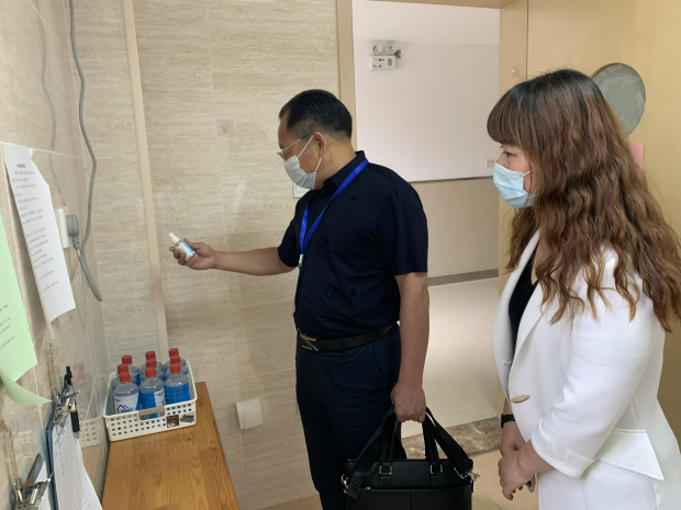 检查组领导一行到达园门口后,经过体温测量并出示苏康码,门卫进行登记后,进行免洗洗手液洗手,挂好访客牌,然后方可入园,严格按照疫情防控要求,把好入园第一关。